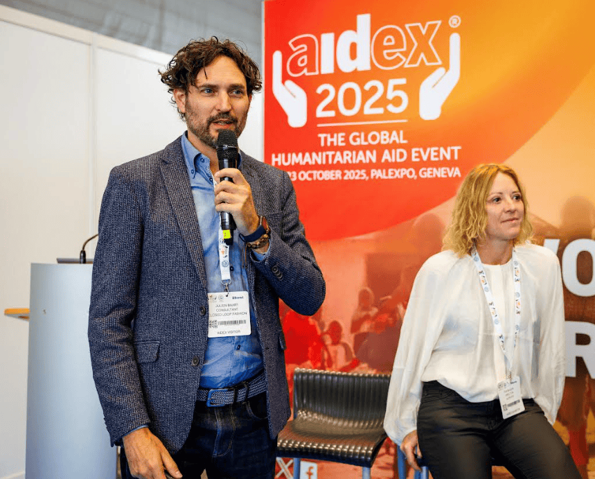 This year’s AidEx, the world’s largest annual event for aid and development, took place in Geneva on the 22-23 of October, bringing together over 3,000 delegates from local and international NGOs, UN agencies, government bodies and industry partners. The theme was, “Future-Proofing Humanitarian Aid,” which explored how the sector can strengthen its resilience and adaptability in the face of evolving global challenges. Closed Loop Fashion joined partners Alpinter and H. Nizam Din & Sons (Pvt) Ltd to present the results of their joint efforts to embed sustainability and circularity into humanitarian shelter tents. The presentation, delivered as part of AidEx’s main conference programme, shared the outcomes of a comprehensive Life-Cycle-Assessment (LCA) on three different tent models and introduced new circular design scenarios developed from the findings.